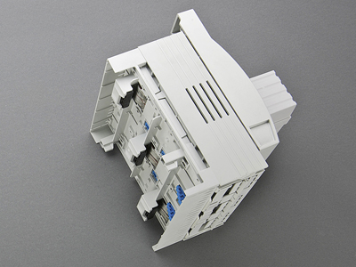 Fast and safe conversion of the connection for top or bottom; the parts under voltage remain shock protected