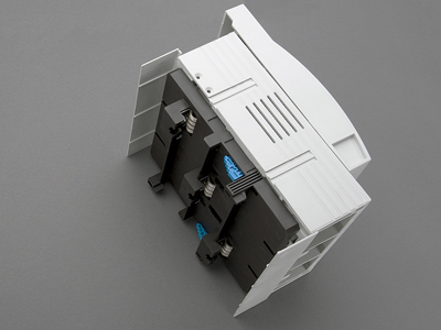 The shock protection is split into 2 for safe connection of the conductors.