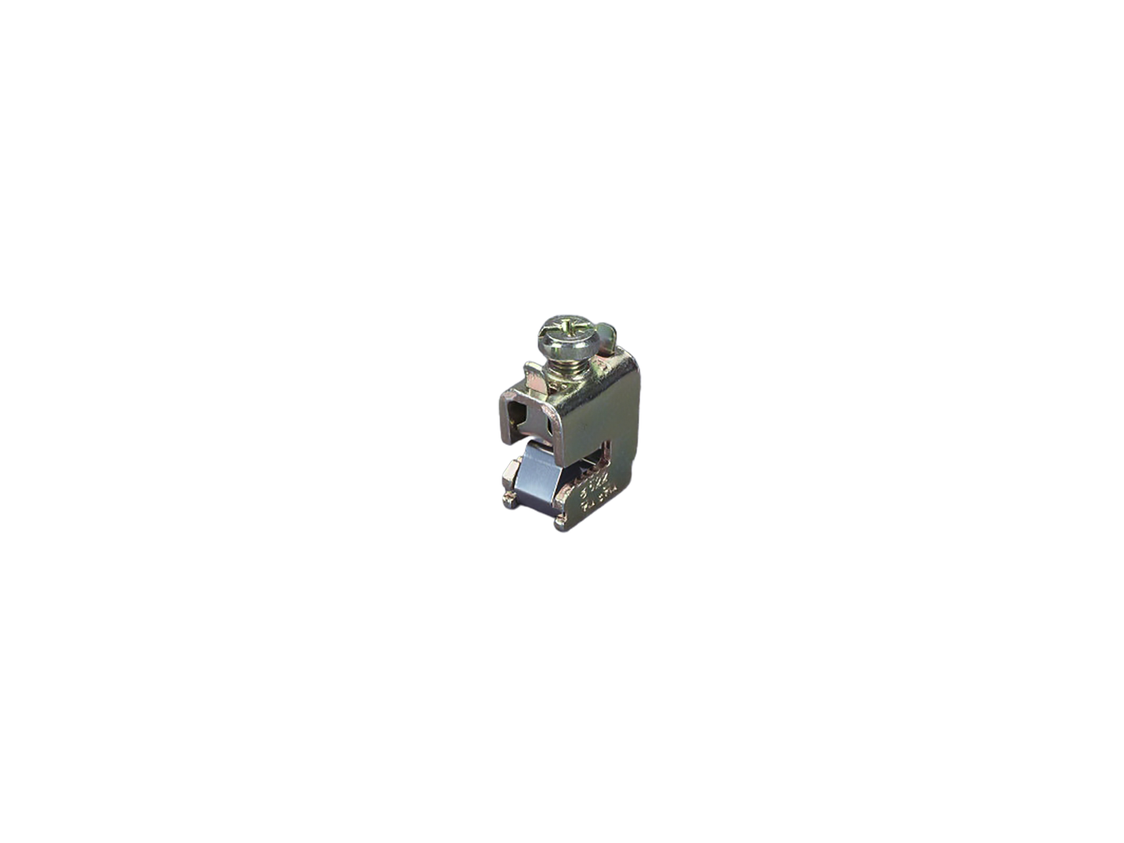 Terminal with integrated holding spring, captive clamping screw and opened terminal space.