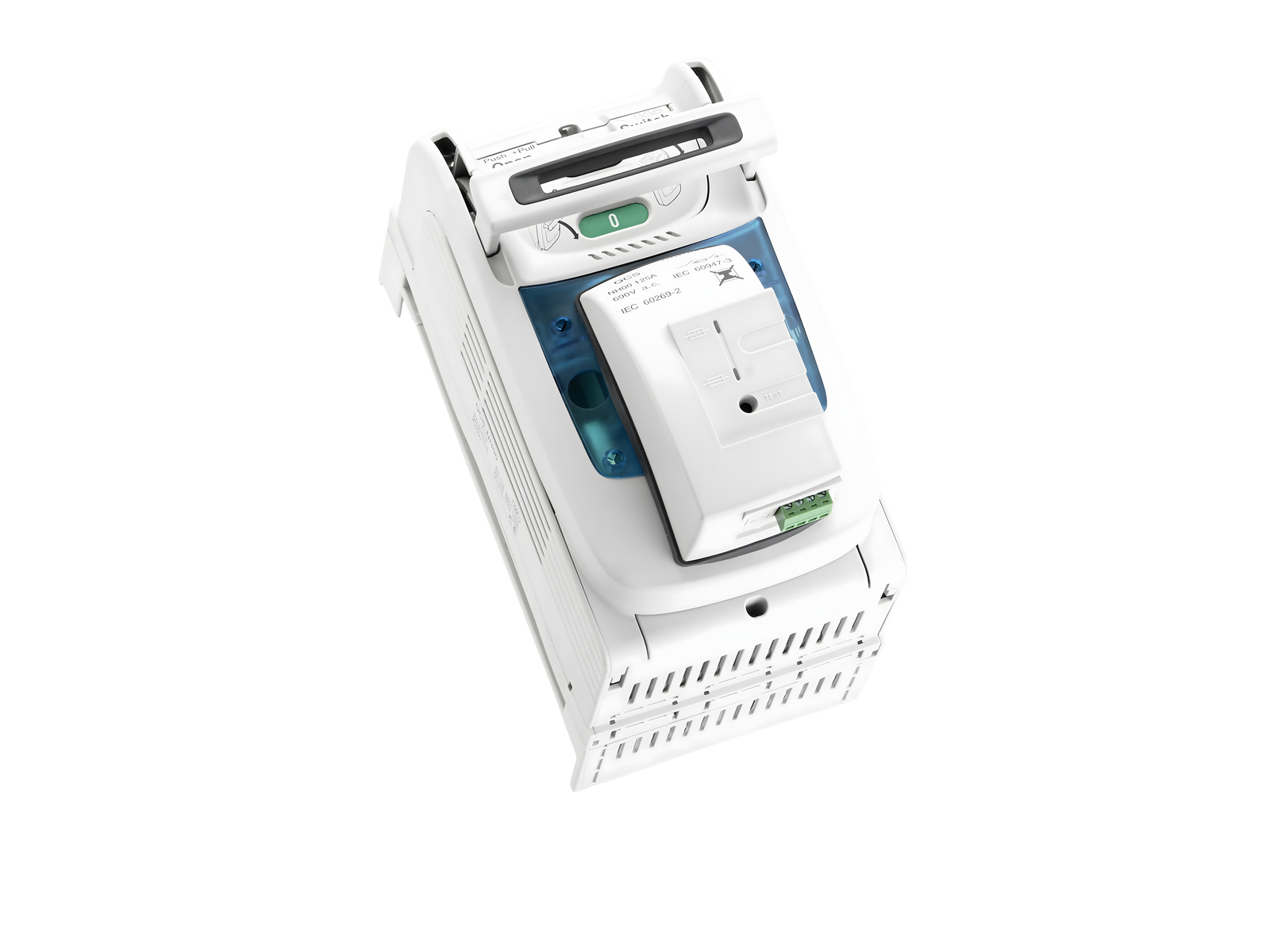 Zusätzliche sichtbare Trennstrecke durch Entnahmen des Deckels incl. Sicherungen