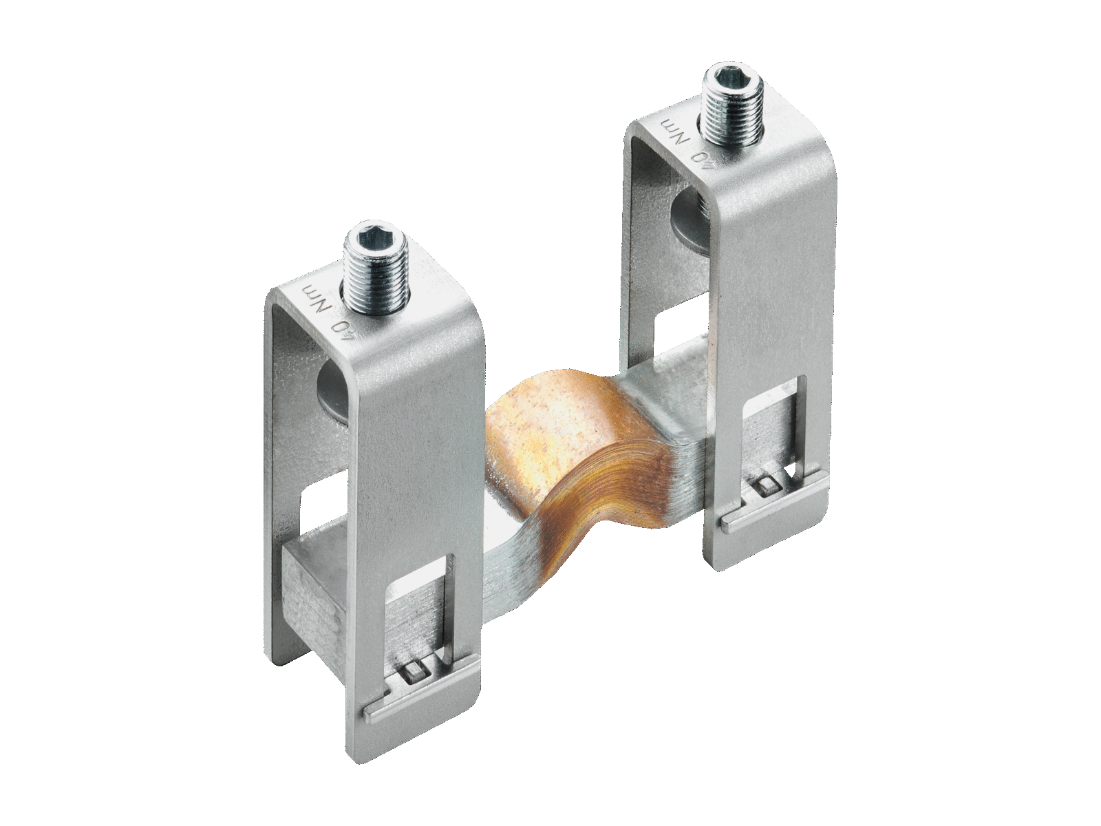 T and double-T section busbars can be clamped, angle deviations and busbar offset are compensated, 1 unit is needed for a 3-pole connection. |