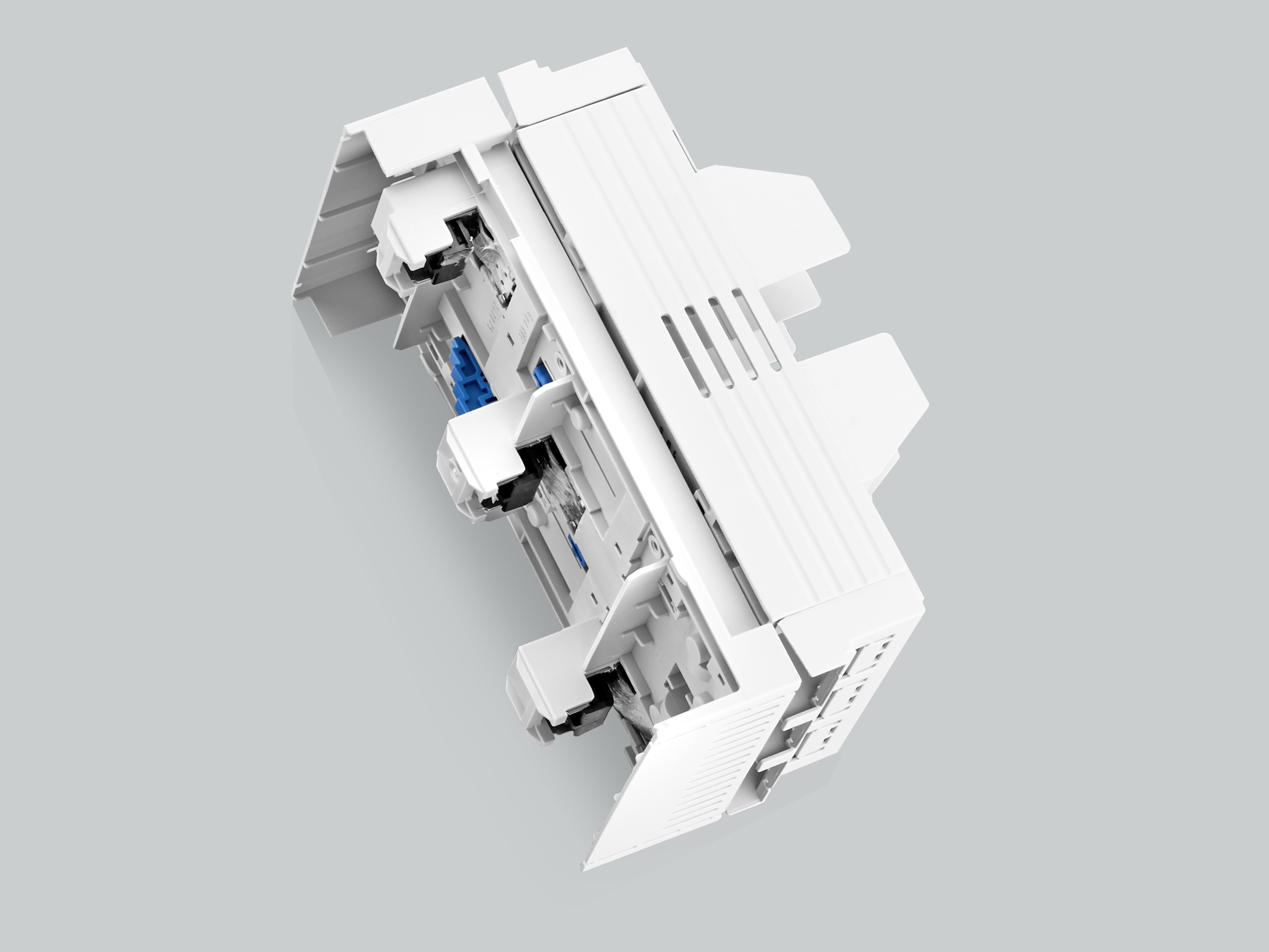 母线连接: 预压紧的弹性连接, 便捷的卡接结构, 通过组合脚简便地在5mm和10mm厚的母线上转换。