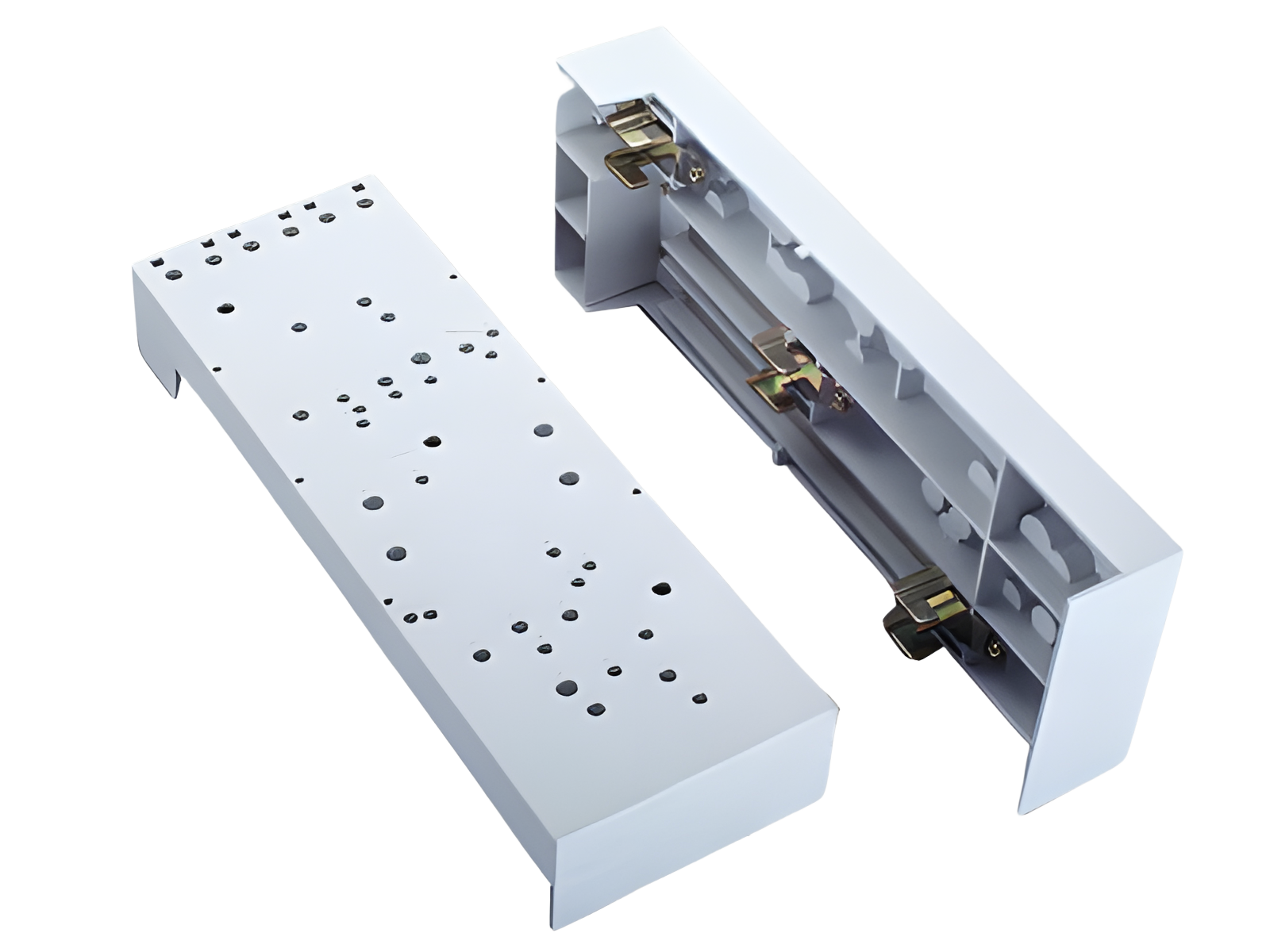 保证设备与母线机械和电气连接的安全。 帽导轨和不同开关设备的固定方法, 孔位图参阅下载: CAD-Symbol 2D